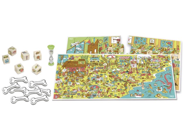 Tu misión: lanzar el dado, identificar el objeto que te ha tocado y encontrarlo en el tablero ilustrado lo antes posible. Pero ojo, el reloj de arena no espera: la atención, la comunicación y la cooperación serán tus mejores aliados.