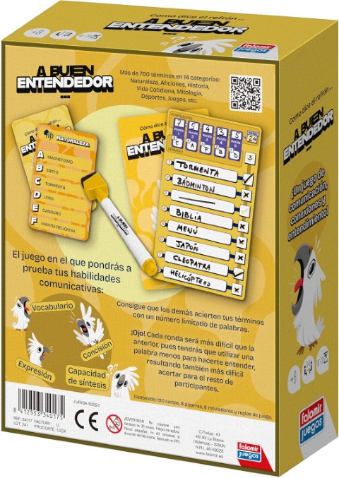 A buen entendedor de Falomir es un juego tremendamente divertido, para no parar de reír, en el que pondrás a prueba tus habilidades comunicativas. ¡Un juego donde tendrás que controlar tus palabras para no decir demasiadas!