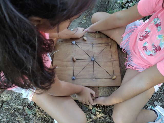 Reprodución artesanal do clásico xogo de 3 en raia.