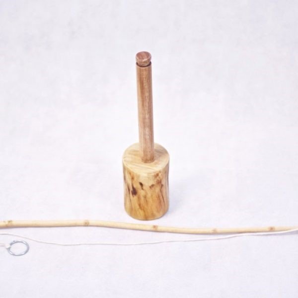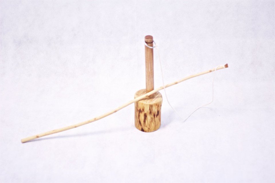 A pesca do pau Miudiño consta dunha base en tronco e un pau de poda simulando a botella.