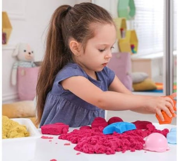 Jugar con la Dynamic Sand influye en el desarrollo del pensamiento creativo y de la imaginación de los peques, les tranquiliza y tiene un efecto desestresante. Al igual que jugar con arena cinética o arena normal, esta arena, tiene un impacto positivo su desarrollo. Los involucra en la actividad creativa, estimulando así su imaginación y desarrollando la creatividad. Este juego también juega un papel determinado, por ejemplo, en el desarrollo del habla.