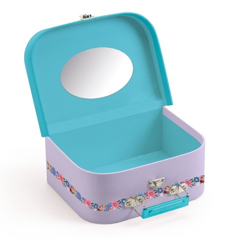 - 1 maleta de cartón con asa y 1 espejo en el interior.