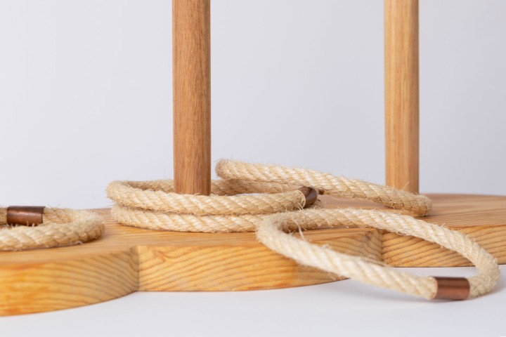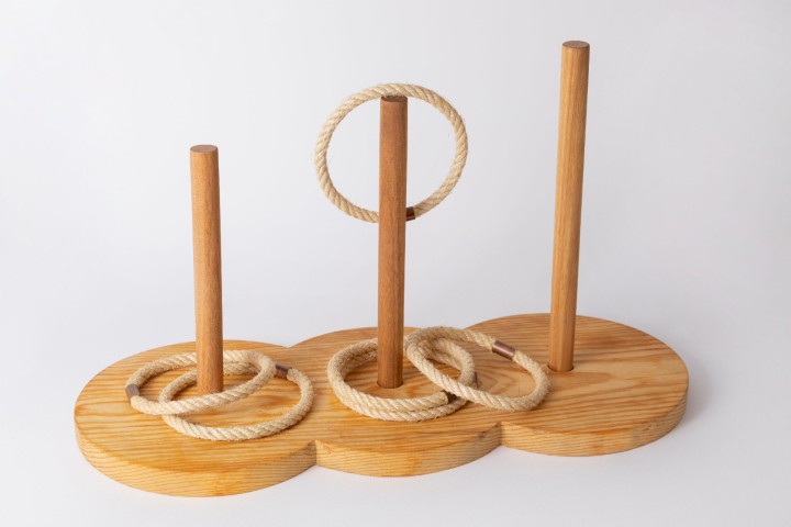 As argolas de Miudiño é un marabilloso xoguete de habilidade no que terás que practica a túa puntería. Realizado artesanalmente en madeira de piñeiro tratada con aceites naturais e argolas feitas con corda de cáñamo.