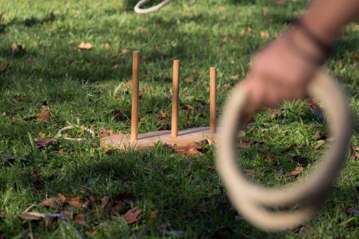 Terás que lanzar os aneis de corda e collelos nos postes para gañar.