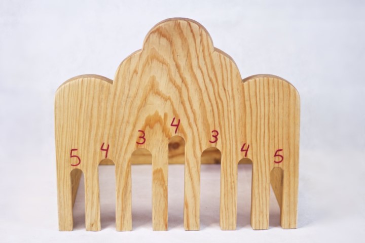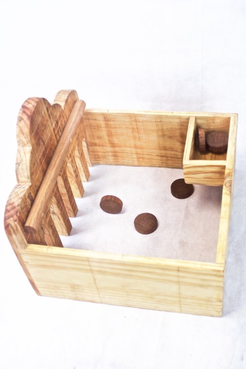 As Pontes de Miudiño é un fermoso xoguete de puntería. Realizado artesanalmente e composto de corpo elaborado en madeira de piñeiro e seis discos. Tratada con aceites naturais.