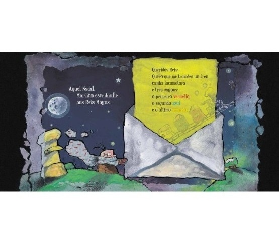 Cando Martiño tivo ganas de mexar na noite de Reis chega sempre polo Nadal para facer sorrir a lectores pequenos e grandes, para que gocen da ledicia e da ilusión que agroma en cada páxina. Porque todo comeza cunha carta co mesmo encabezado: “Queridos Reis…”