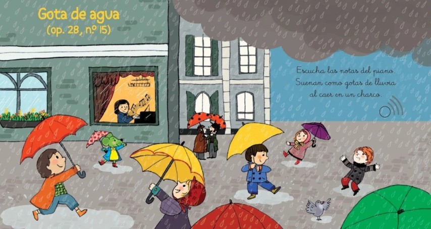 Cada ilustración de este libro esconde un botón que hará sonar melodías de música clásica de Chopin. El sonido de calidad y las preciosas ilustraciones hacen que esta colección de libros de sonidos no pare de crecer.